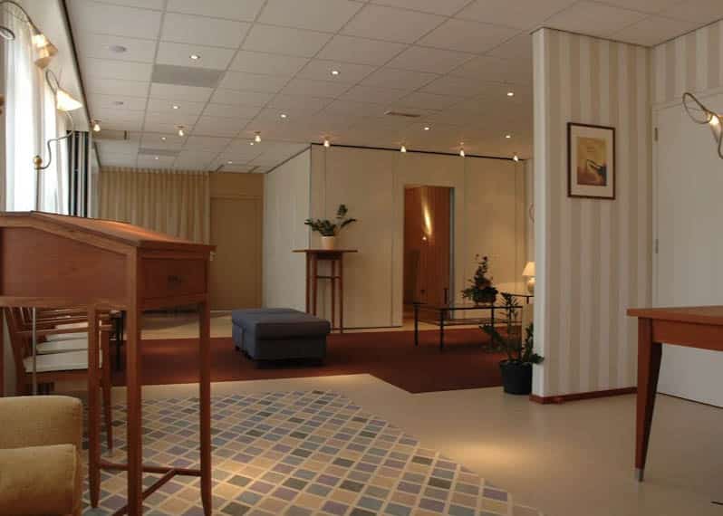 Benieuwd hoe een kamer eruit ziet of het afscheidscentrum in zijn geheel? Bekijk dan onze sfeerimpressie hieronder.